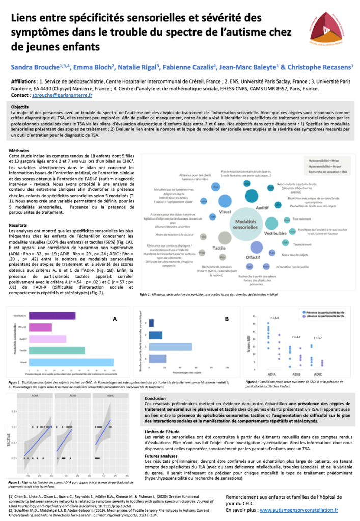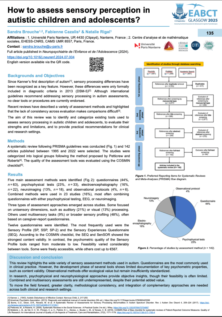 Brouche, S., Cazalis, F. & Rigal, N. (2025, September). How to assess sensory perception in autistic children and adolescents. EABCT, Glasgow, United Kingdom. [LIEN]